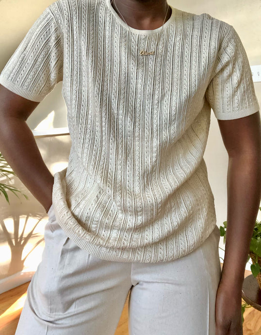textured cream silk top