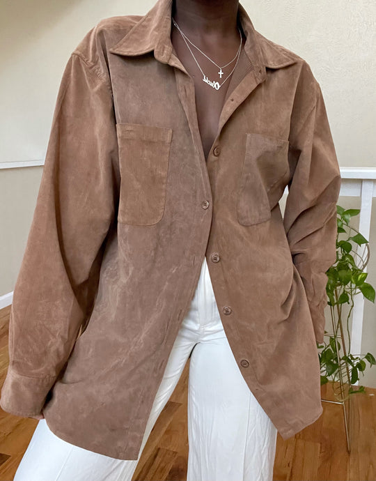 textured brown button up